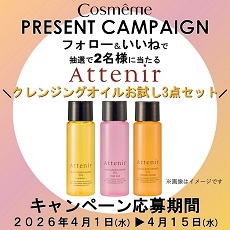 【Instagramキャンペーン】アテニア クレンジングオイルミニサイズのお試し3点セットプレゼント♪